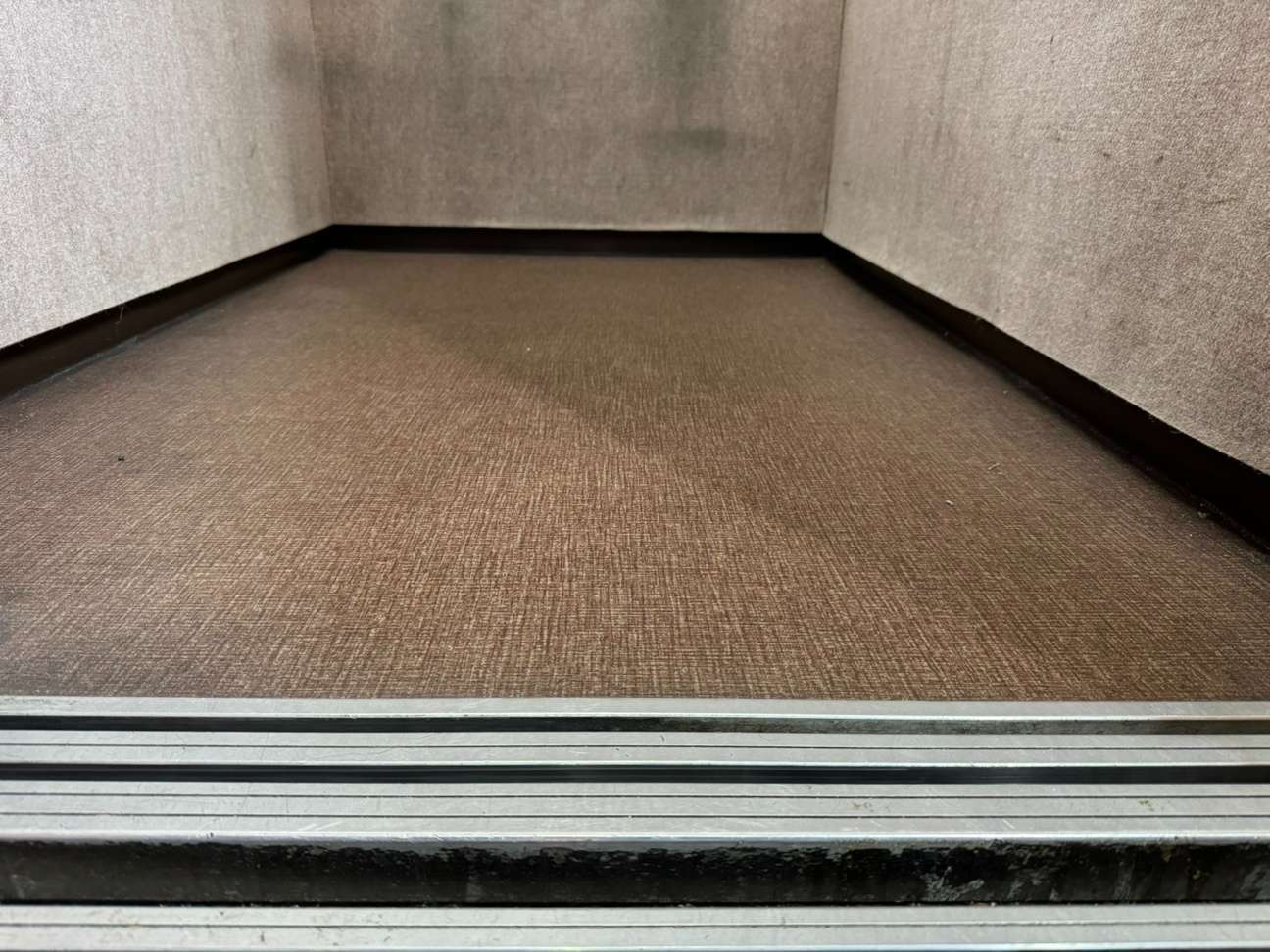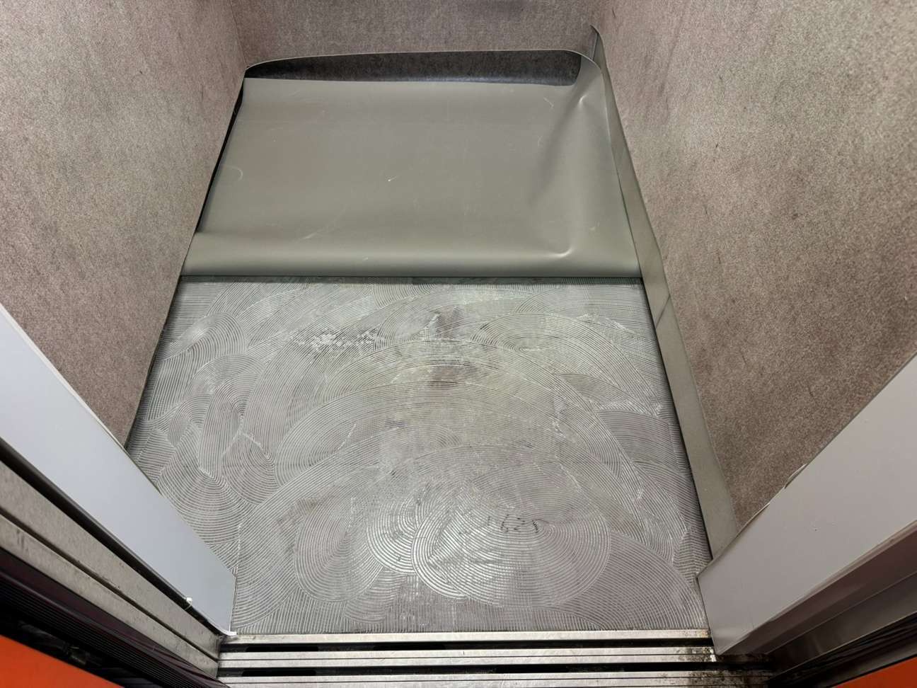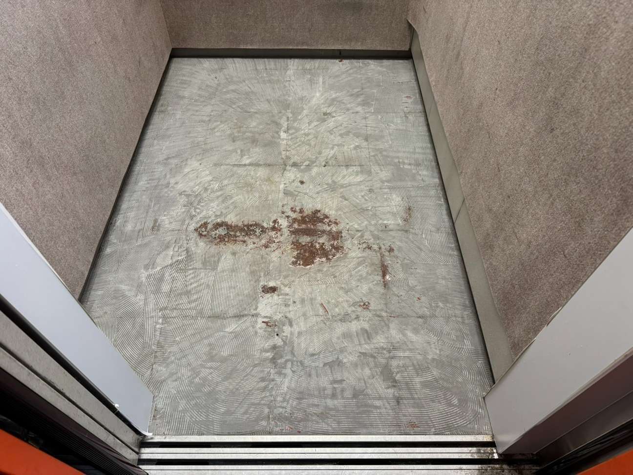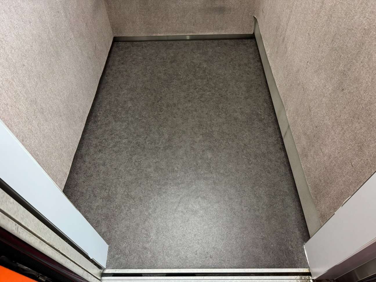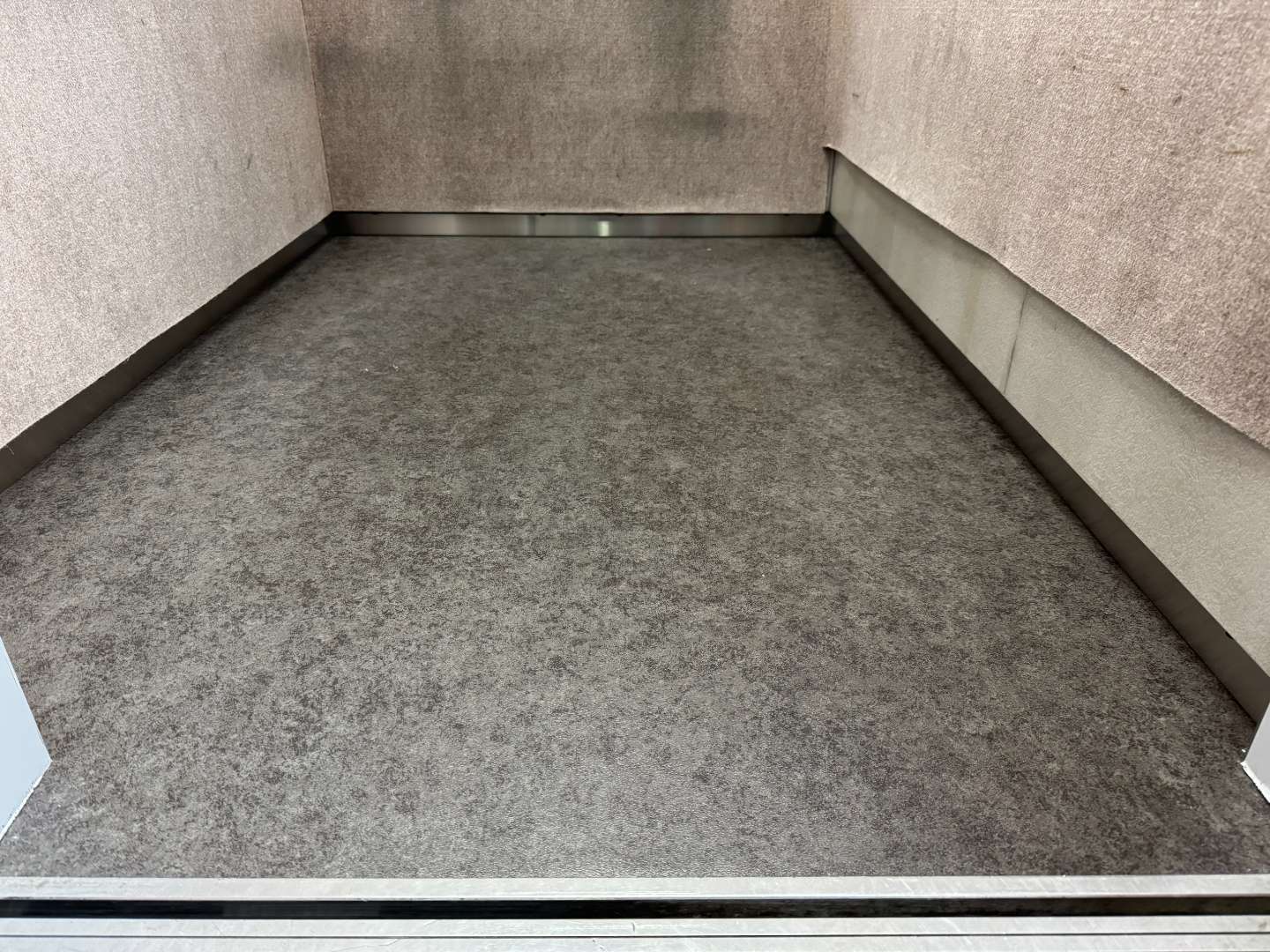 従来のブラウン系から落ち着いたグレー調に変更することで、空間全体が引き締まり、より洗練された印象に。エレベーターの印象は建物全体の印象にもつながるため、床の張替えは費用対効果の高いリニューアルのひとつです。