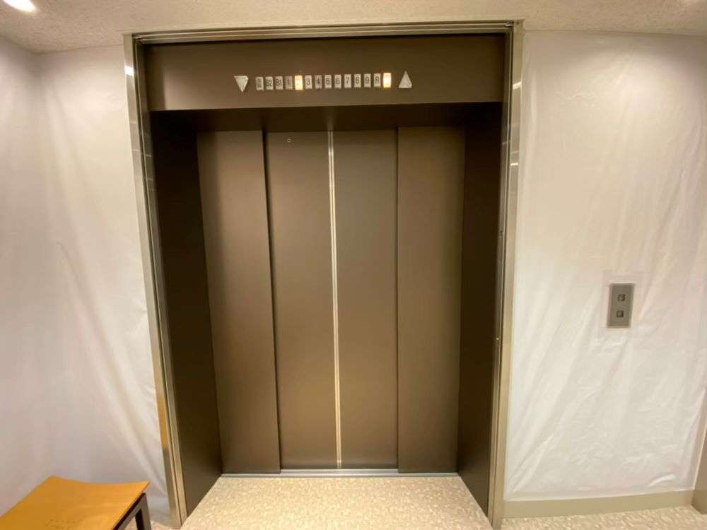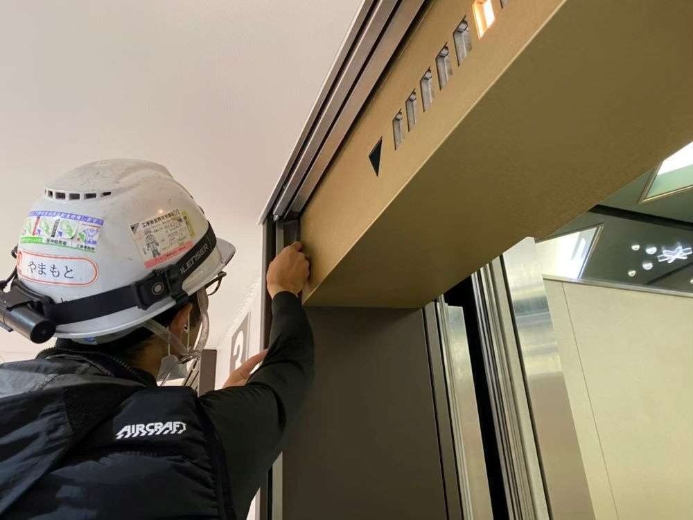 商業施設エレベーターの出入口廻りへの化粧シート貼り工事を行いました。
